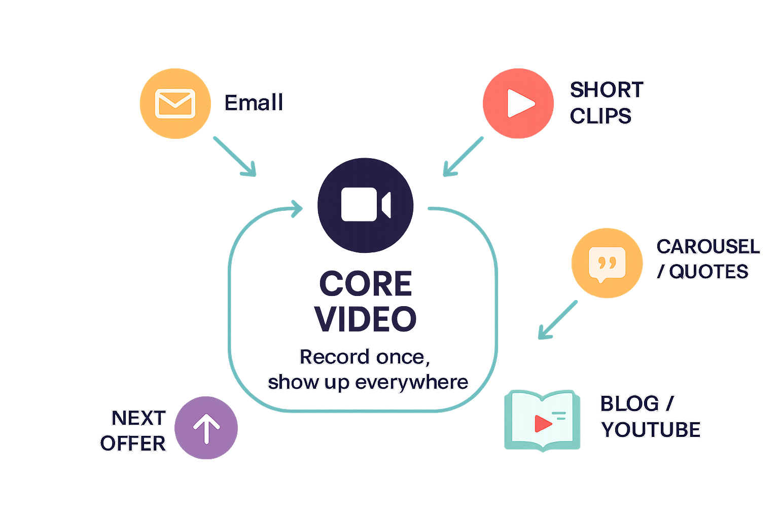The fix: Start with one core video that carries your message in your voice—then repurpose that into everything else (email, posts, blog, YouTube).